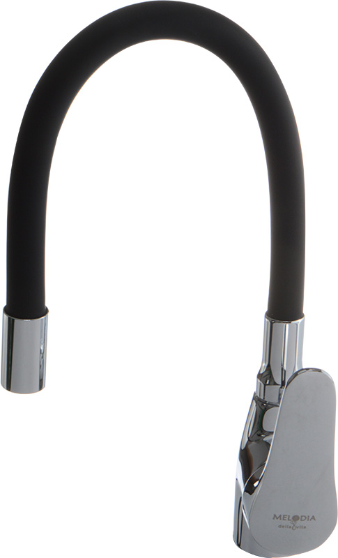 Смеситель для кухни MELODIA Ostessa с чёрным гибким изливом 40615Black изготавливается в России и имеет гарантию 5 лет. Надежный латунный корпус, гибкий силиконовый излив чёрного цвета, керамический картридж 40мм, без гибкой подводки в комплекте.