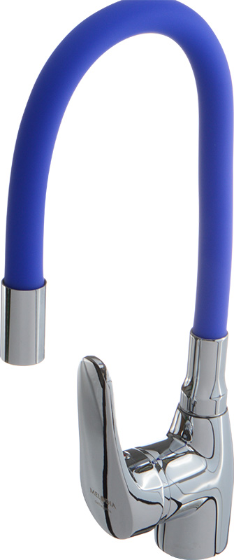 Смеситель для кухни MELODIA Ostessa с синим гибким изливом MDV 40615Blue изготавливается в России и имеет гарантию 5 лет. Надежный латунный корпус, гибкий силиконовый излив синего цвета, керамический картридж 40мм, без гибкой подводки в комплекте.