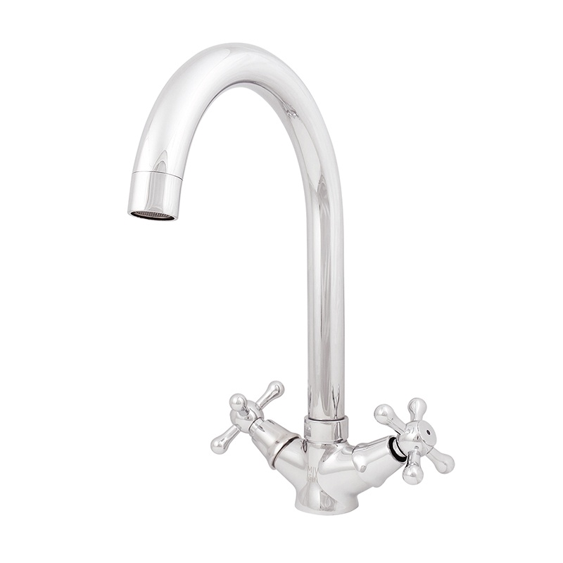 Выполнен из высококачественной латуни. Многослойное никель-хромовое покрытие. Поворотный латунный литой излив. В комплектацию входит: смеситель, гибкая подводка, комплект крепежа, паспорт изделия.
