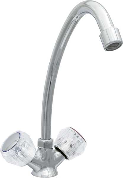 Смеситель для кухни ЦС-СМ 12/2 г серии "Стандарт" от подольской производственно-торговой группы "Центр Сантехники" предназначен для установки в мойку или раковину и представляет собой конструкцию с двумя маховиками и поворотным изливом.