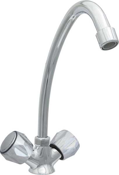 Смеситель для кухни ЦС-СМ 12/2 г серии "Стандарт" от подольской производственно-торговой группы "Центр Сантехники" предназначен для установки в мойку или раковину и представляет собой конструкцию с двумя маховиками и поворотным изливом.