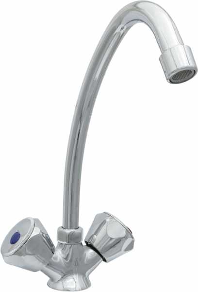 Смеситель для кухни ЦС-СМ 12/2 г серии "Стандарт" от подольской производственно-торговой группы "Центр Сантехники" предназначен для установки в мойку или раковину и представляет собой конструкцию с двумя маховиками и поворотным изливом.