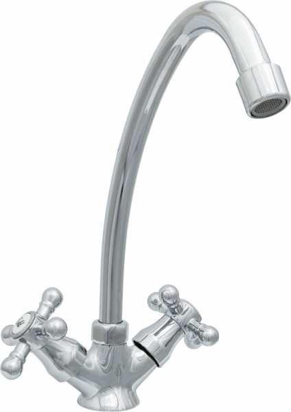 Смеситель для кухни ЦС-СМ 12/2 г серии "Стандарт" от подольской производственно-торговой группы "Центр Сантехники" предназначен для установки в мойку или раковину и представляет собой конструкцию с двумя маховиками и поворотным изливом.