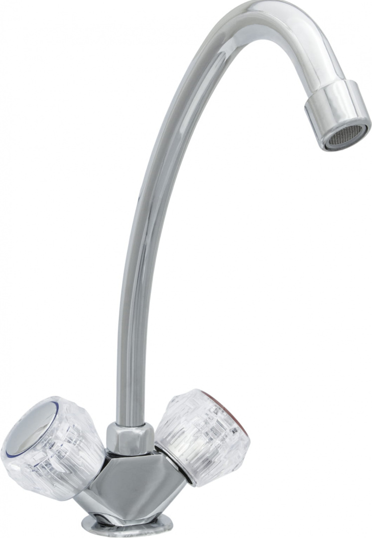 Смеситель для кухни ЦС-СМ 12 г серии "Стандарт" от подольской производственно-торговой группы "Центр Сантехники" предназначен для установки в мойку или раковину и представляет собой конструкцию с двумя маховиками и поворотным изливом.