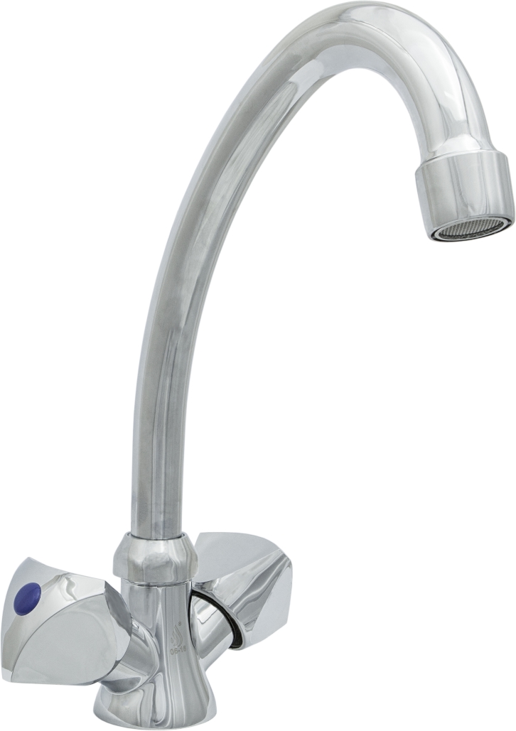 Смеситель для кухни ЦС-СМ 25 серии "Стандарт" от подольской производственно-торговой группы "Центр Сантехники" предназначен для установки в мойку или раковину и представляет собой конструкцию с двумя маховиками и поворотным изливом.
