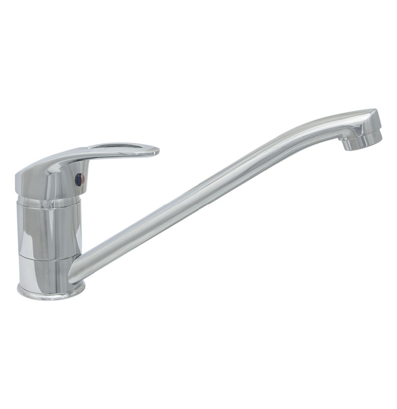 Смешивание и подача воды происходит с помощью керамического картриджа диаметром 40 мм и поворотным изливом длиной 230 мм. Смеситель крепится на мойке с помощью гайки , без гибкой подводки в комплекте.