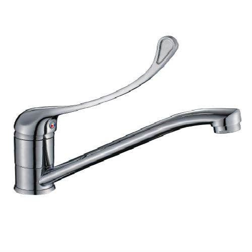 Смеситель ROSSINKA Y35-25 предназначен для использования на кухне или умывальнике в медицинских учреждениях. Смеситель устанавливается на мойку или умывальник в монтажное отверстие и закрепляется присоединительной группой. Управлять процессом включения и смешивания воды можно с помощью локтевой ручки с керамическим картриджем диаметром 35 мм и повортного излива длиной 199 мм.