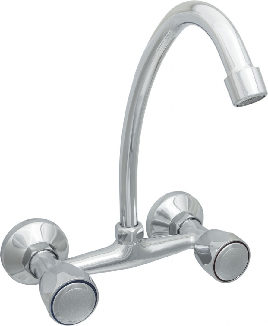 Настенный смеситель для мойки/умывальника ЦС-СМ 293 от подольской производственно-торговой группы "Центр Сантехники" предназначен для использования в кухонных мойках или умывальниках и представляет собой настенную конструкцию с двумя маховиками и верхним изливом.