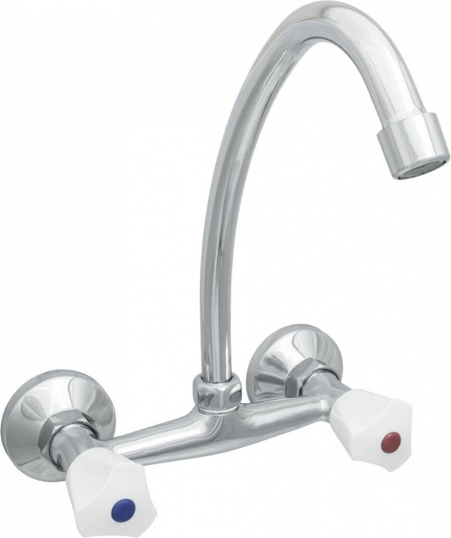 Настенный смеситель для мойки/умывальника ЦС-СМ 293 от подольской производственно-торговой группы "Центр Сантехники" предназначен для использования в кухонных мойках или умывальниках и представляет собой настенную конструкцию с двумя маховиками и верхним изливом.