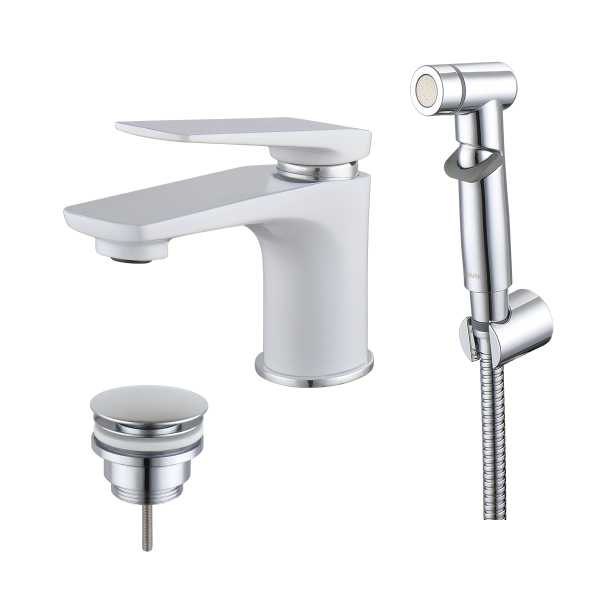 Смеситель для умывальника LEMARK Аллегро с лейкой для биде, хром/белый, LM5916CW
