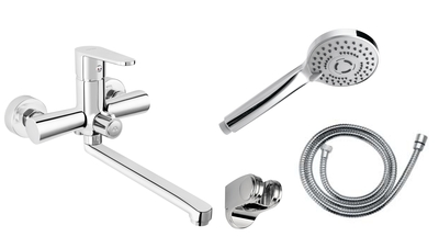 Смеситель Ferro Algeo BAG55A предназначен для использования в ванных комнатах и монтируется на стену. Подача и смешивание воды происходит с помощью ручки и керамического картриджа диаметром 35 мм, плоский поворотный излив длиной 350 мм. Гибкий шланг с лейкой для душа крепится на стене, длина шланга в оплетке из нержавеющей стали 1,5 м, между лейкой и изливом переключение происходит с помощью керамического переключателя.