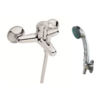 Смеситель Ferro Rosa BRR11 предназначен для использования в ванне и монтируется на стену. Подача и смешивание воды происходит с помощью ручки с керамическим картриджем диаметром 35 мм и короткого излива. Гибкий шланг с лейкой для душа крепится на стене, длина шланга в оплетке из нержавеющей стали 1,5 м, между лейкой и изливом переключение происходит с помощью кнопочного дивертора.