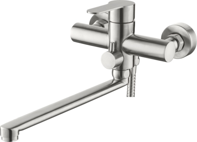 Смеситель для ванны LEDEME L72203 из серии смесителей H733 изготовлен из нержавеющей стали, смешивание и подача воды происходит с помощью керамического картриджа 35 мм, излива 300 мм и одной ручки. В комплекте гибкий шланг длиной 1,5 метра, душевая лейка с настенным креплением, декоративные отражатели и эксцентрики. Гарантия 3 года.