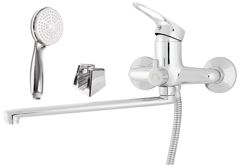 Смеситель для ванны MELODIA Classica картридж д.40мм с изливом 350мм со шлангом, кронштейном и лейкой 1-функциональной 100мм круглой.Гарантия 5 лет. Хромированное покрытие