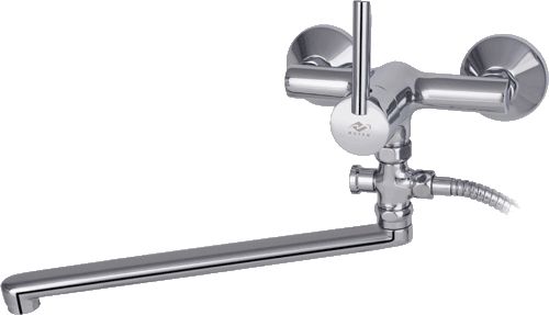 Смеситель для ванны Mofem Mambo 603 представляет собой конструкцию с одной ручкой для настенного монтажа, изготовлен из высококачественной хромированной латуни, смешивание холодной и горячей воды с помощью керамического картриджа диаметром 35 мм, ручка металлическая. Смеситель с поворотным изливом длиной 300 мм применяется для ванны и душа, а также может использоваться в умывальниках, переключатель излив/душ кнопочный. В комплекте лейка с держателем на стену, душевой шланг 1,5 м, эксцентрики, декоративные отражатели, аэратор М24*1.