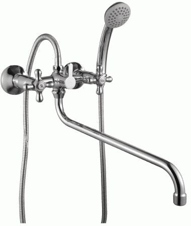Смеситель ROSSINKA H02-84 предназначен для использования в ванной комнате. Смеситель устанавливается на стену. Управлять процессом включения и смешивания воды можно с помощью двух ручек с резиновыми кран-буксами и круглого поворотного излива 350 мм. Переключение воды между лейкой и изливом происходит с помощью керамического дивертора.