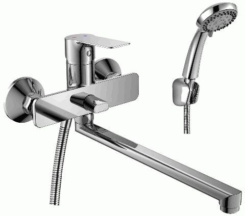 Смеситель ROSSINKA RS27-33 предназначен для использования в ванной комнате. Смеситель устанавливается на стену. Управлять процессом включения и смешивания воды можно с помощью одной ручки с керамическим картриджем диаметром 35 мм и плоского поворотного излива 350 мм. Переключение воды между лейкой и изливом происходит с помощью керамического дивертора.