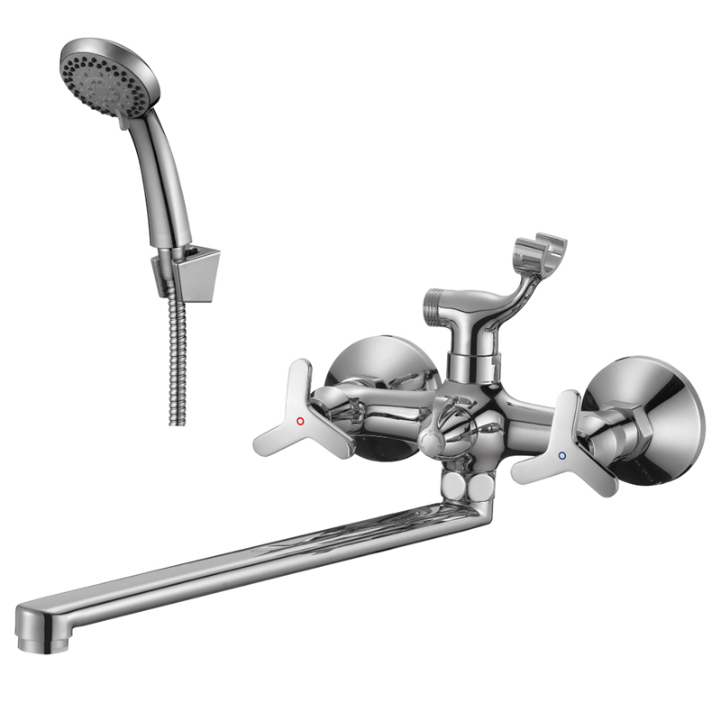 Смеситель ROSSINKA RS40-84 предназначен для использования в ванной комнате. Смеситель устанавливается на стену. Управлять процессом включения и смешивания воды можно с помощью двух ручек с керамическими кран-буксами и круглого поворотного излива 350 мм. Переключение воды между лейкой и изливом происходит с помощью керамического дивертора.