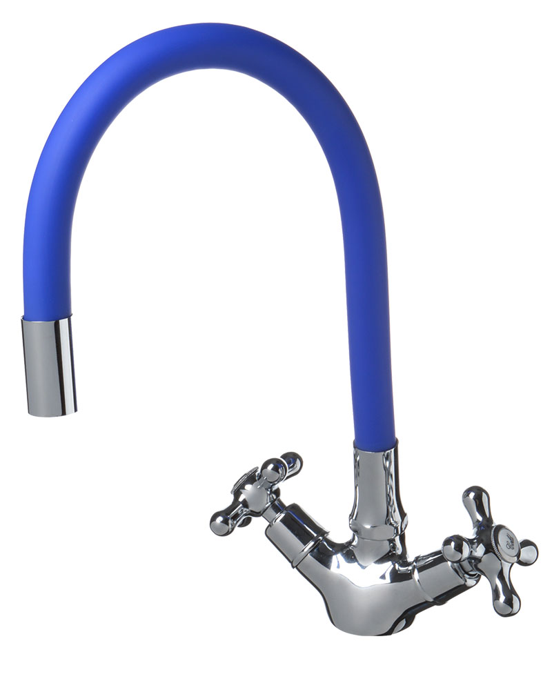 Смеситель кухня Ex-Promt 1/2 керамика с гайкой, гиб. излив, blue Ex 102.2-01 латунь (без подводки)