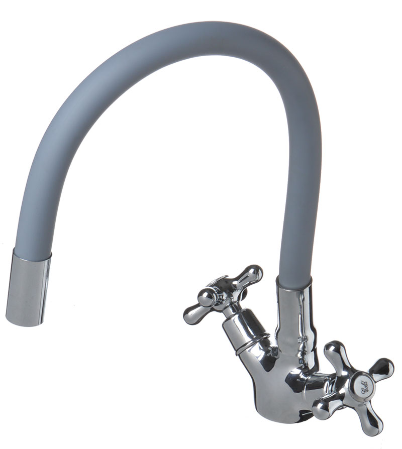 Смеситель кухня Ex-Promt 1/2" керамика с гайкой, гиб.излив, gray Ex 102.2-01 латунь (без подводки)