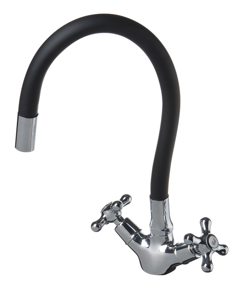 Смеситель кухня Ex-Promt 1/2керамика с гайкой, гибкий излив, black Ex 102.2-01 латунь (без подводки)