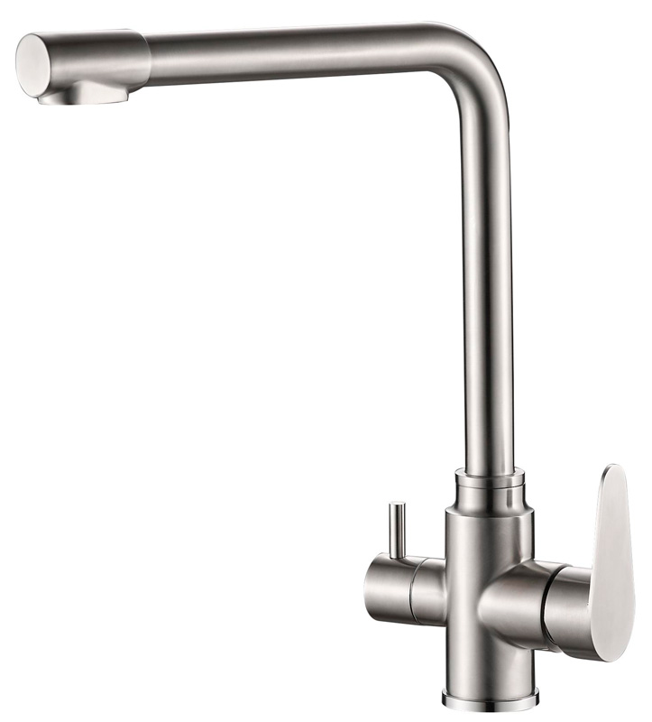 Преимуществом серии является комфорт: теперь не нужно устанавливать два отдельных смесителя - для питьевой и водопроводной воды - достаточно одного смесителя, который объединяет достоинства двух изделий в одном эргономичном корпусе.