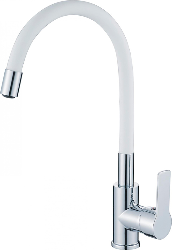 Смеситель кухня комбинированный HAIBA силиконовый с гибким изливом, белый/хром HB70112-8