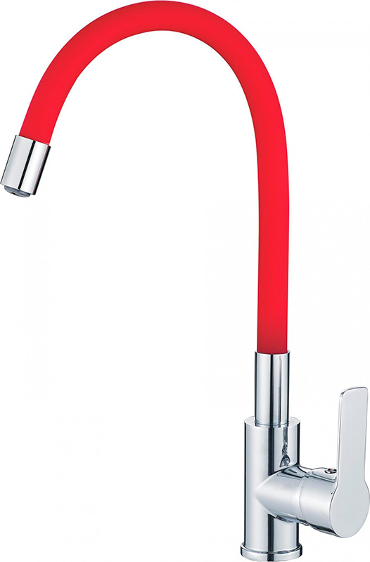 Смеситель кухня комбинированный HAIBA силиконовый с гибким изливом, красный/хром HB70112-6