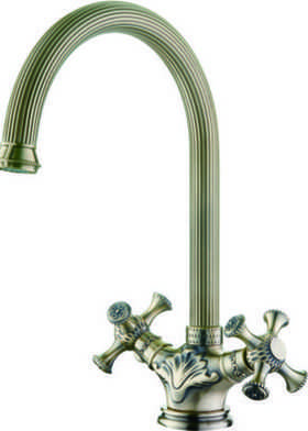 Смеситель кухня LEDEME крест литой излив, бронза керамика L4191C