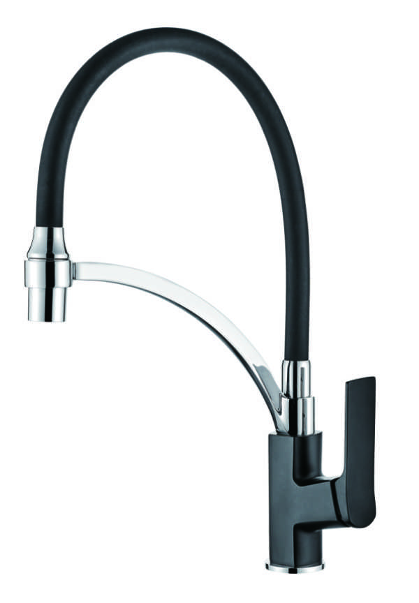 Смеситель кухня LEDEME, силиконовый излив, черный+черный хром L4075B-2