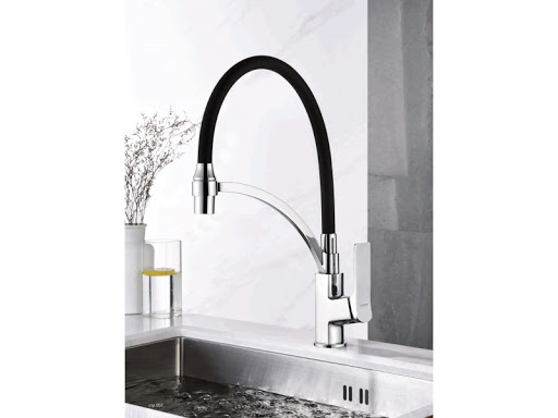 Смеситель кухня LEDEME, силиконовый излив, черный+хром L4075-2