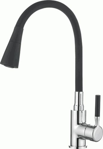 Смеситель кухня LEDEME, силиконовый излив, черный+хром , L4199-2