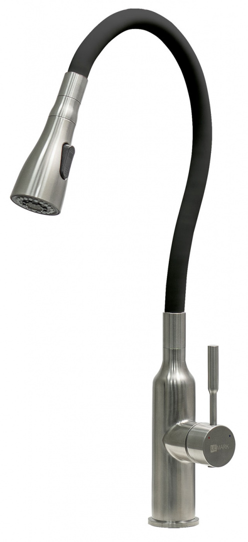 Смеситель кухня LEMARK "Эксперт " с гибким изливом, 2-функции, аэратором, сталь/черный LM5082S-Blac
