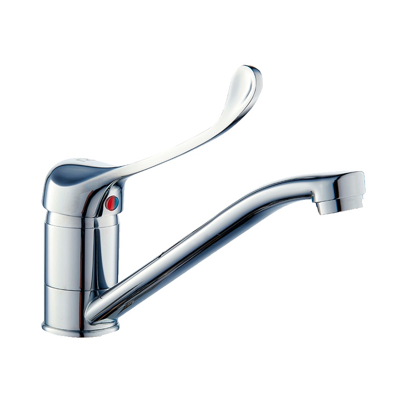 Однозахватный локтевой смеситель предназначен для использования в хозяйственных помещениях (гараж, мастерская, сарай, подвал и пр.), когда возникает потребность включить воду, не прикасаясь к смесителю грязными руками.