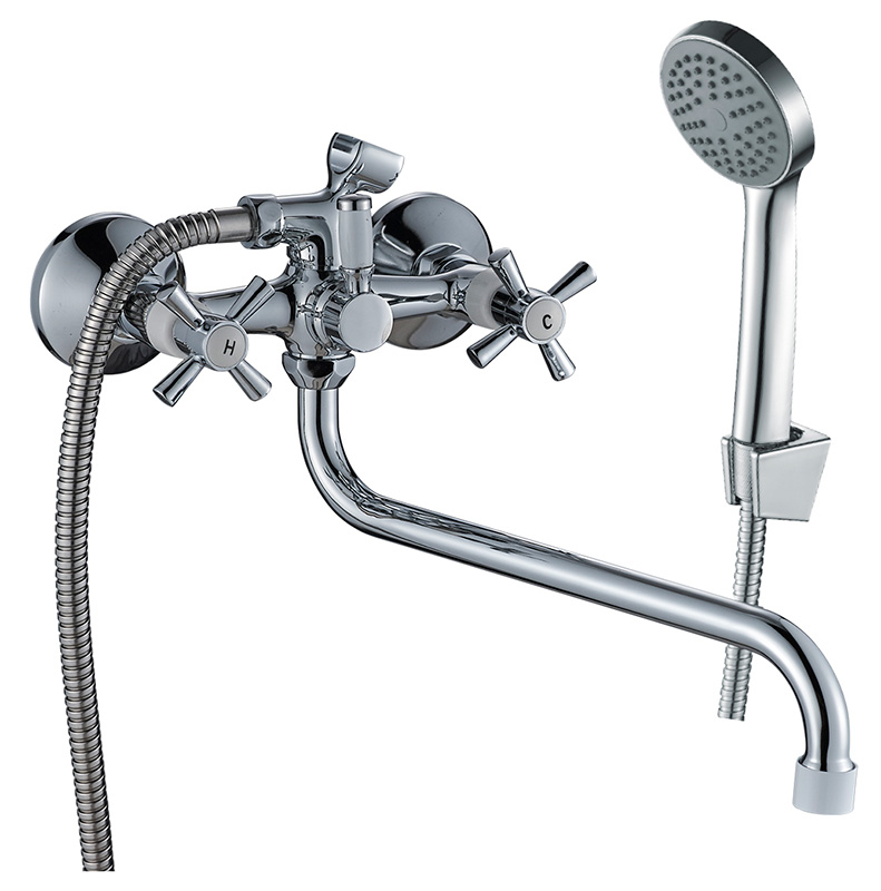 Смеситель ванна DECOROOM длинный поворотный излив 30см, бел./хром DR51045-White