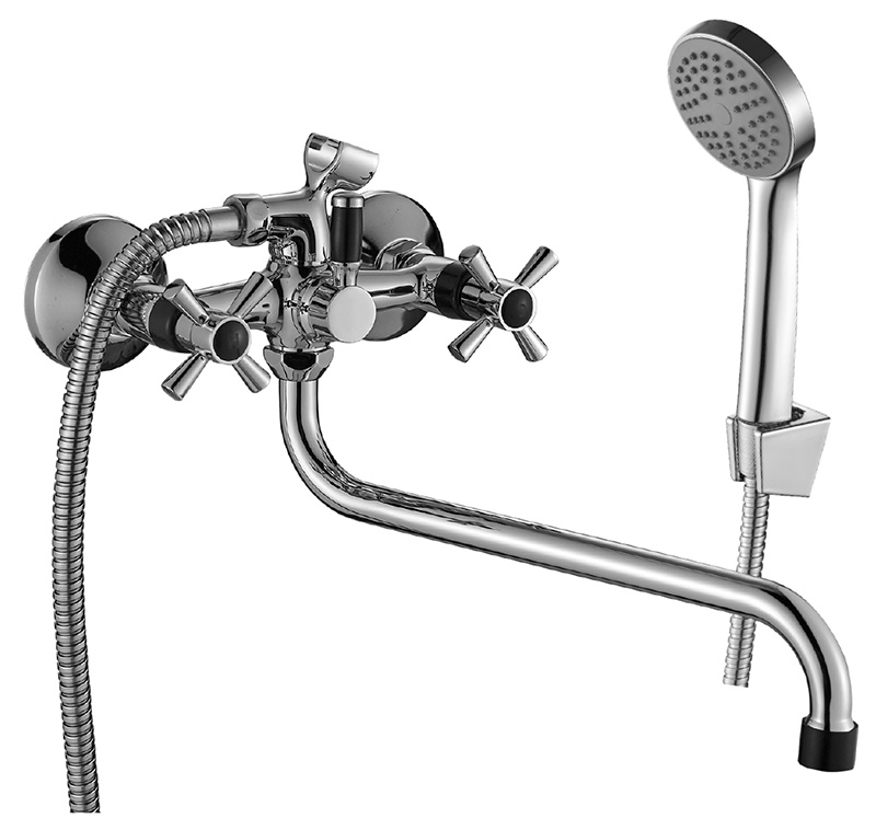 Смеситель ванна DECOROOM длинный поворотный излив 30см, черн./хром DR51045-Black