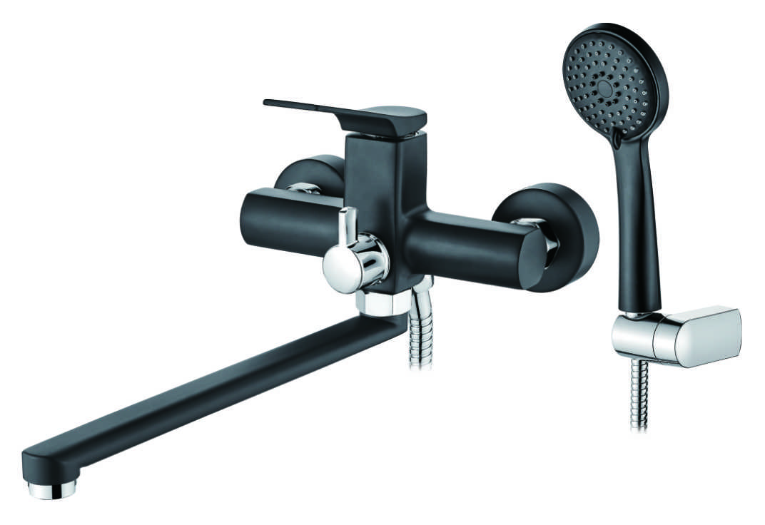 Смеситель ванна LEDEME длинный поворотный излив 35см. черный , L2275B
