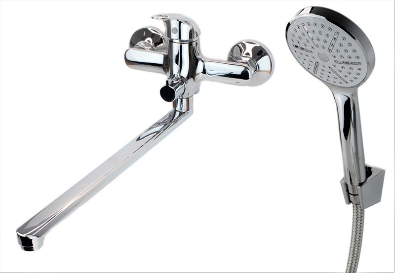 Корпус: латунь кат.A Излив: поворотный, 320мм Картридж: универсальный ESKO, 35мм Комплектация: эксцентрики, отражатели, шланг душевой (в мет. оплетке - 150см.), лейка душевая(1 режим), настенный держатель для лейки (многорежимный)
