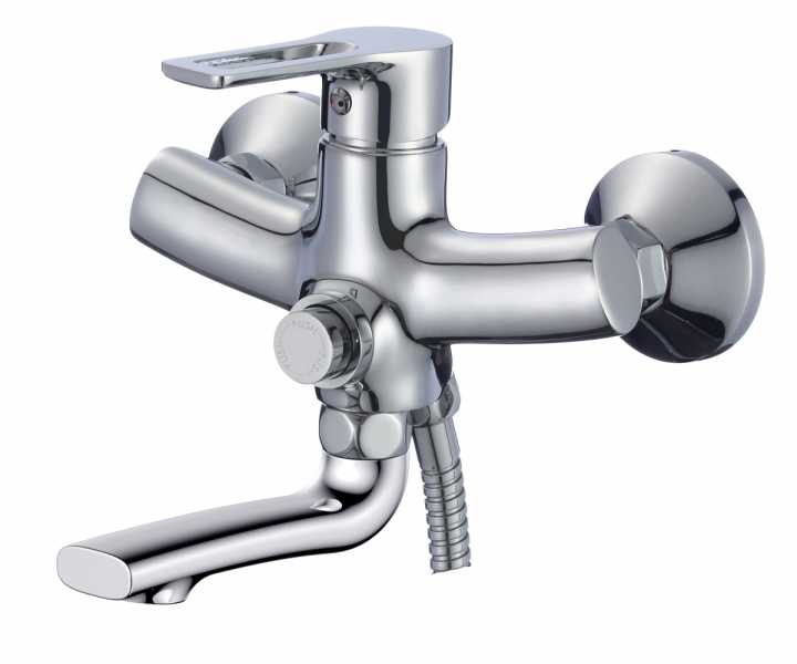 Смеситель ванна ROSSINKA универсальный с поворотным изливом 140мм, кнопочный дивертор, хром RS43-36