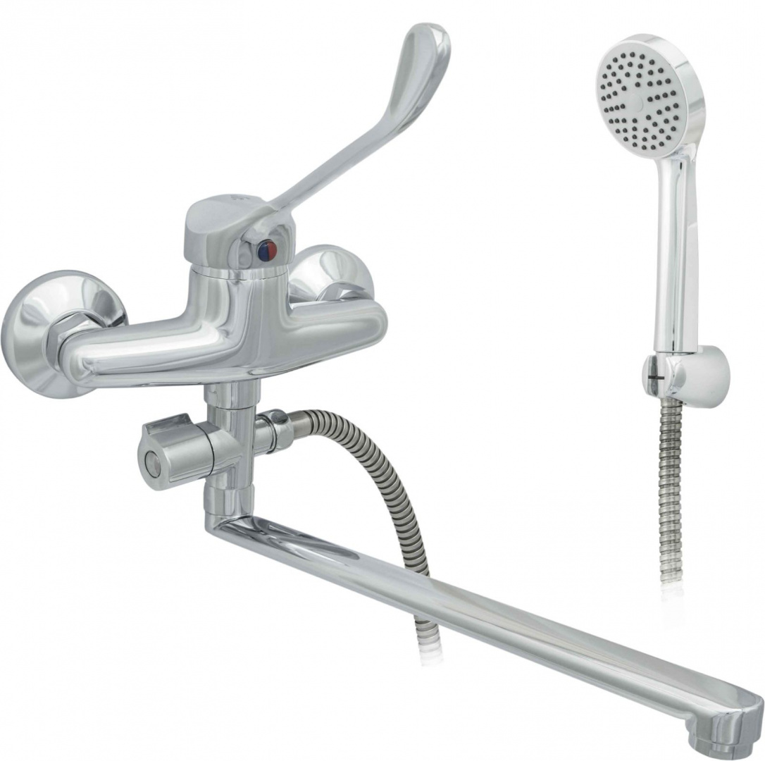 Смеситель для ванны ЦС-СМ 300-4 от подольской производственно-торговой группы "Центр Сантехники" предназначен для использования в ванных комнатах и представляет собой настенную одноручную конструкцию с длинным плоским изливом и душевой лейкой на гибком шланге. Смешивание и подача горячей и холодной воды происходит с помощью керамического картриджа 40 мм и ручки М42, переключение режима подачи воды излив/лейка с помощью картриджа с керамическими пластинами, длина излива 300-350 мм, длина душевого шланга 1,5 м.
