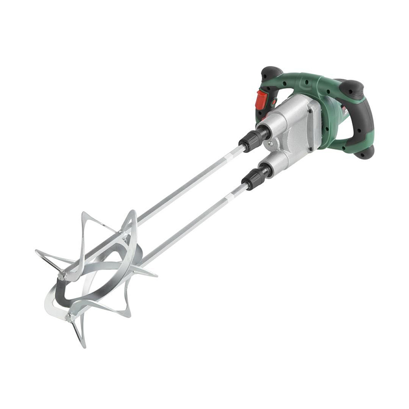 Предназначен для смешивания строительных растворов. Две насадки диаметром 120 мм и длиной 550 мм для большей производительности. Отсутствие крутящего момента на рукоятках. Максимальный объем размешивания 180 л. Электронный ограничитель скорости вращения. Корпус редуктора из металла. Фиксатор выключателя. Обрезиненные рукоятки.