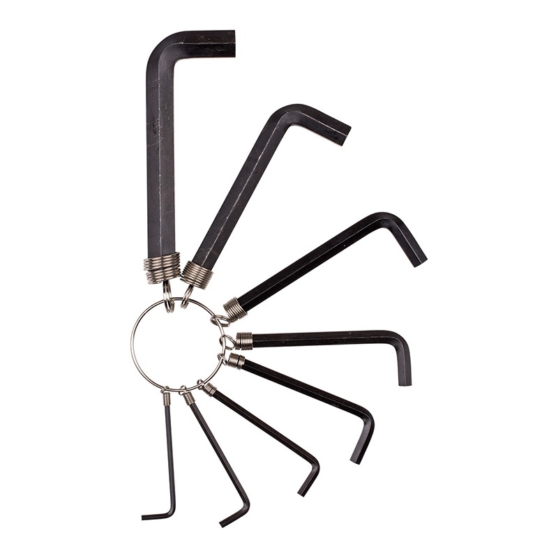 Предназначены для винтов и шурупов с внутренним шестигранным шлицем. Высокопрочная углеродистая сталь. Набор 8 предметов на кольце: HEX 2х43; HEX 2,5х45; HEX 3х48; HEX 4х52; HEX 5х57; HEX 6х64; HEX 8х68; HEX 10х77 мм