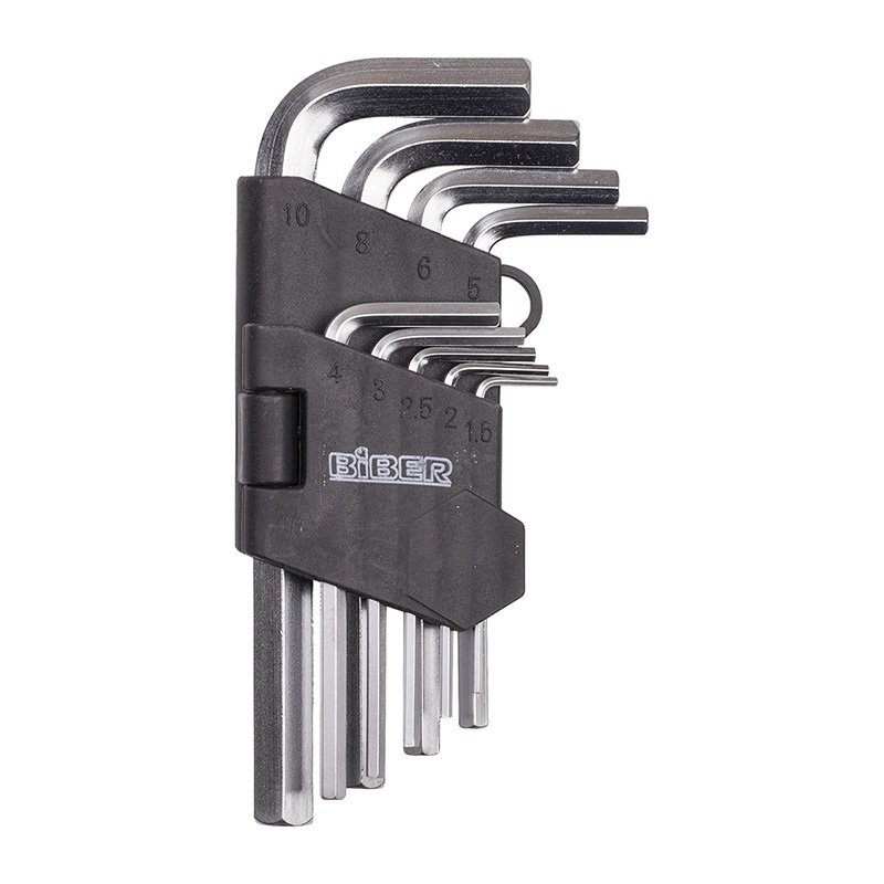 Предназначены для винтов и шурупов с внутренним шестигранным шлицем. Хромованадиевая сталь. Набор 9 предметов: HEX 1,5х50; HEX 2х55; НЕХ 2,5х62; НЕХ 3х70; НЕХ 4х77; НЕХ 5х80; НЕХ 6х90; НЕХ 8х102; НЕХ 10х115 мм