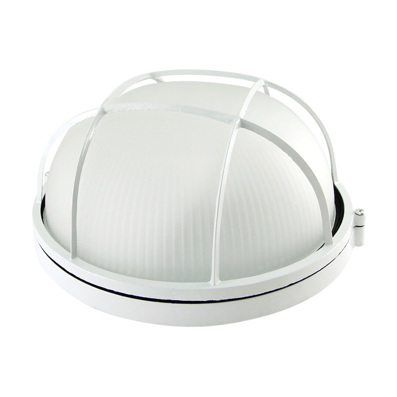 Светильник НПБ Е27, 100Вт, 230В, IP54, круг с решеткой белый, стекло