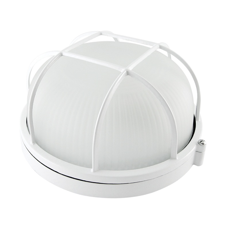 Светильник НПБ Е27, 60Вт, 230В, IP54, круг с решеткой белый, стекло