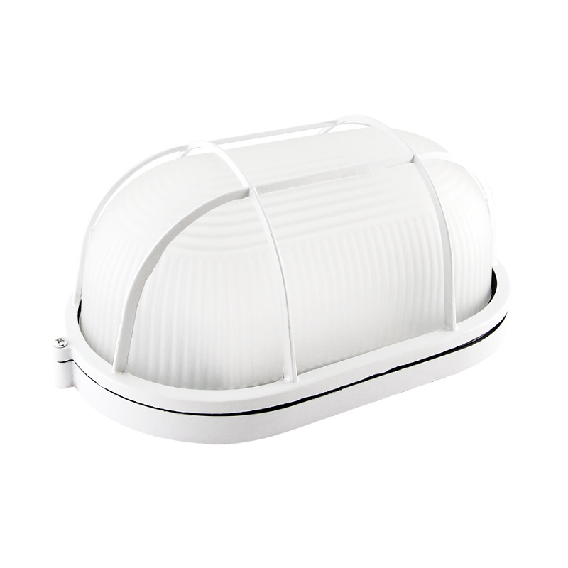 Светильник НПБ Е27, 60Вт, 230В, IP54, овал с решеткой белый, стекло