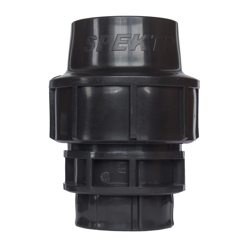 Предназначена для перехода на резьбовое соединение. Состав: полиэтилен низкого давления марки ПЭ 100, значение PN16 (номинального давления) при t=20 градусов - 1,6 Мпа. Имеет один выход для соединения ПЭ труб d=63 мм и один выход с внутренней резьбой 2".