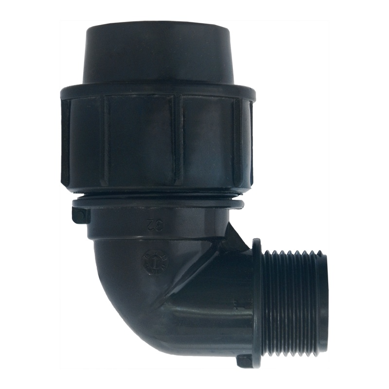 Отвод на 90 градусов для углового соединения труб d=32 мм и фитингов с наружной резьбой 1". Используются при монтаже труб из полиэтилена в различных местах трубопроводной системы таких как: повороты, одиночные и множественные разветвления, места, где полиэтиленовые трубы соединяются с трубами из других материалов, места, где трубы из полиэтилена соединяются с различной трубопроводной арматурой для поворота потока воды 90 градусов.
