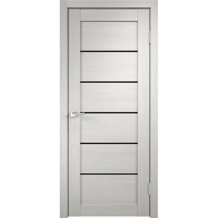 Дверное полотно экошпон LINEA 1 Дуб Белый 900х2000 мм стекло Лакобель черное