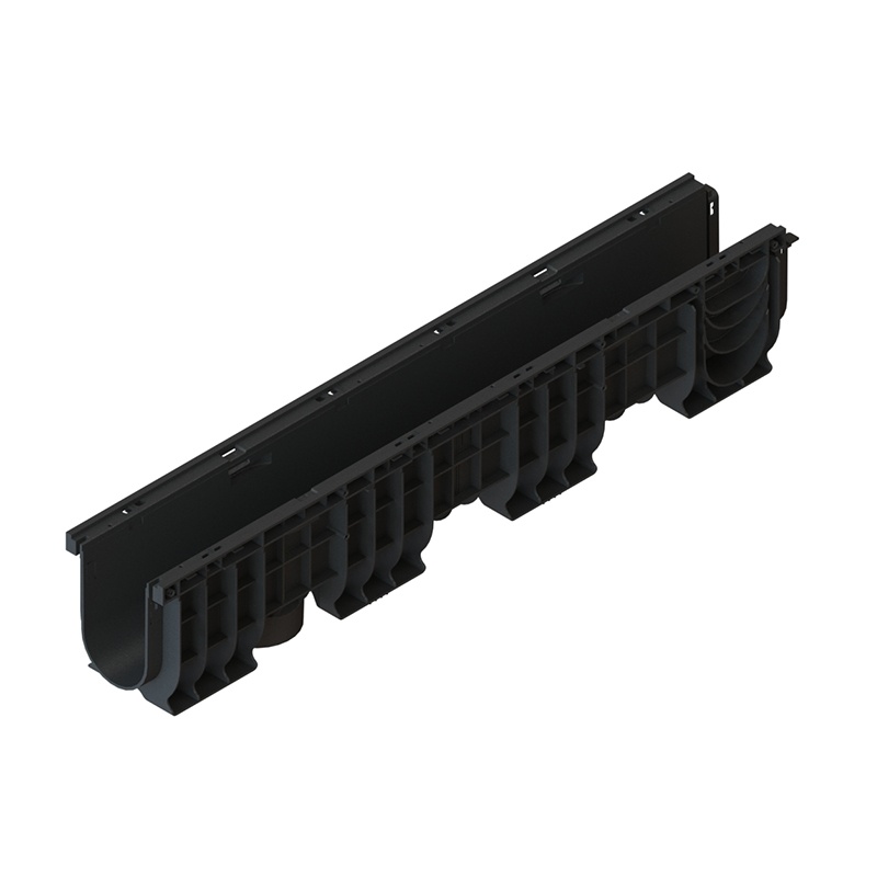 Предназначен для устройства поверхностного водоотвода с территорий подверженных средним нагрузкам - парковки для легковых автомобилей, тротуары, пешеходные зоны, велосипедные дорожки, приусадебные участки и др. Гидравлическое сечение лотка DN100. Выдерживает нагрузки в диапазоне классов А15 - С250. Имеет выходы для подсоединения канализационной трубы d=60-110мм, других лотков этой же серии, а также пескоуловителей и дождеприемников. Сверху лоток должен накрывается чугунной 20303, стальной 2010 или пластиковой 208019 решеткой. От выбора решетки будет зависеть класс выдерживаемой нагрузки.